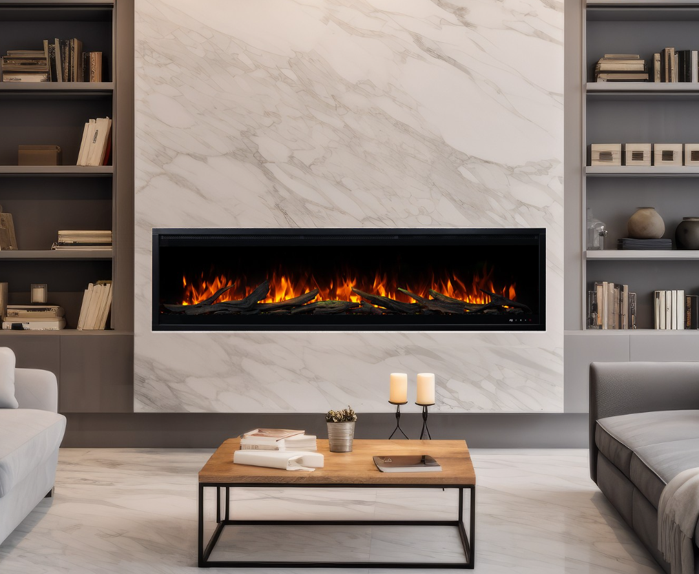 קמין חשמלי Vision 3D בעיצוב פרונטלי מודרני ומרשים בעל גובה מסך הכי גדול בשוק הקמינים החשמליים, עם תצוגת להבות ריאליסטיות וטכנולוגיה מתקדמת ליצירת אווירה חמה, מדויקת ומעוצבת.
