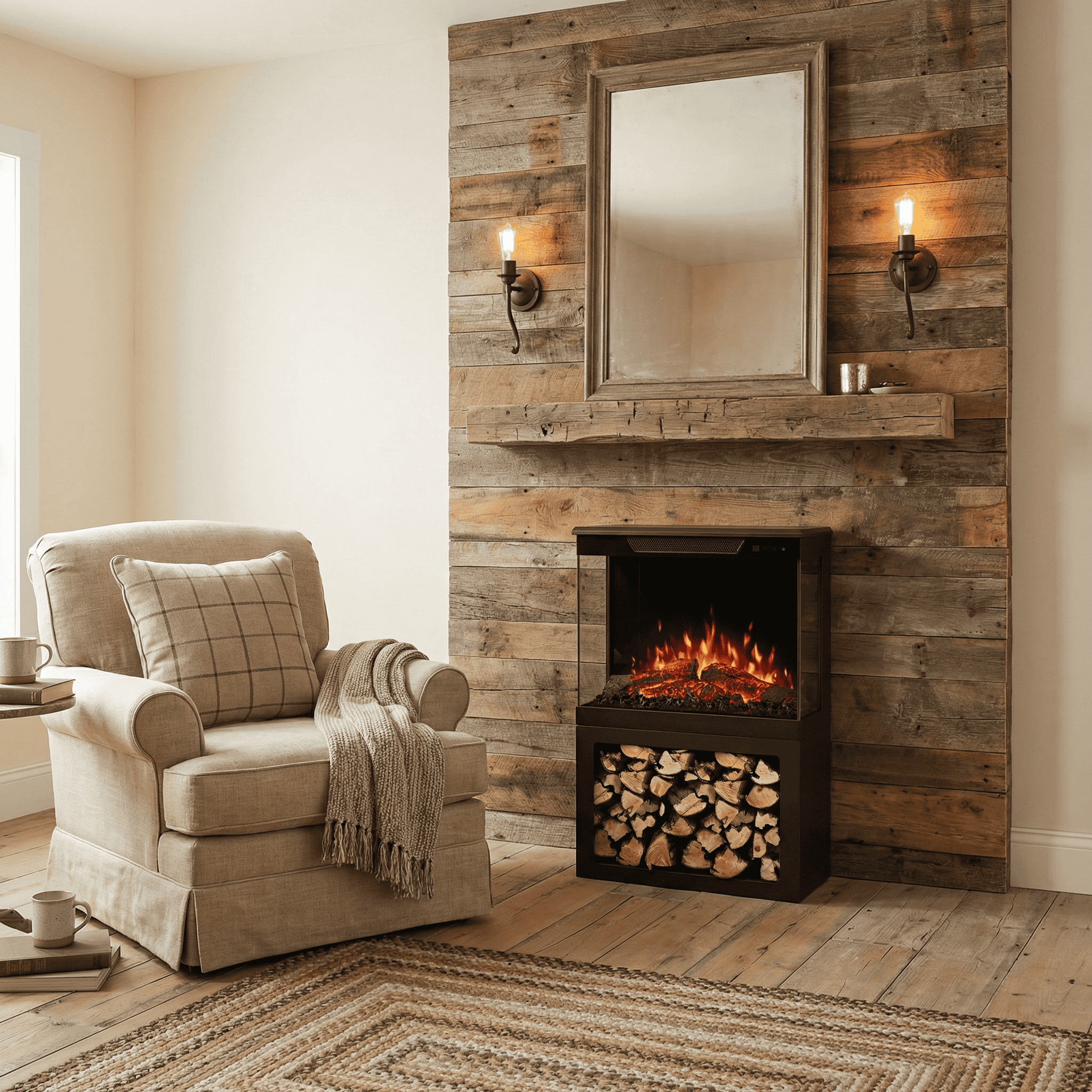 - תצוגת להבות בצבעים משתנים – מראה מודרני וריאליסטי לפי הטעם שלך.